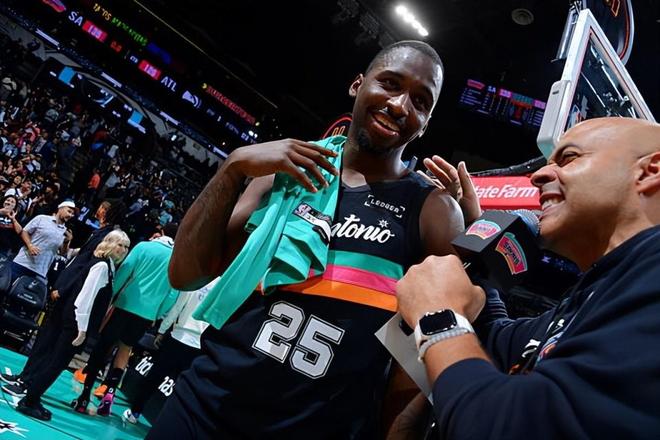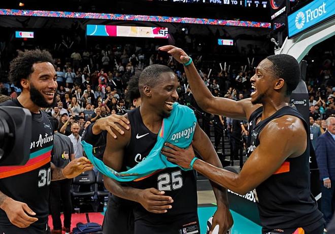 本场比赛中,难得得到了不少出场时间的马刺的替补后场新星大卫-琼斯-加西亚(David Jones Garcia)的表现非常抢眼,展现出了超强的个人能力。琼斯全场出场18分33秒,投篮7中5,三分线外1中1,罚球2中1,得到了12分5篮板6助攻3抢断1盖帽的数据,还有1次失误和1次犯规,正负值更是达到了全场最高的+25。琼斯展现出了全面的得分能力,他不仅突破犀利,终结能力出色,而且他也具备一定的外线投射能力,对手也是没有办法对他进行有效地限制。不仅如此,琼斯还有着相当不错的传球能力和组织能力,也同样起到了很好的效果。除此之外,琼斯也证明了自己有着超强的个人防守能力,他的抢断能力也是顶级水平。琼斯在有限的出场时间内刷出了极高的存在感,为球队的胜利做出了巨大的贡献,+25的正负值更是能够说明他在场上时比赛的局面有多出色。